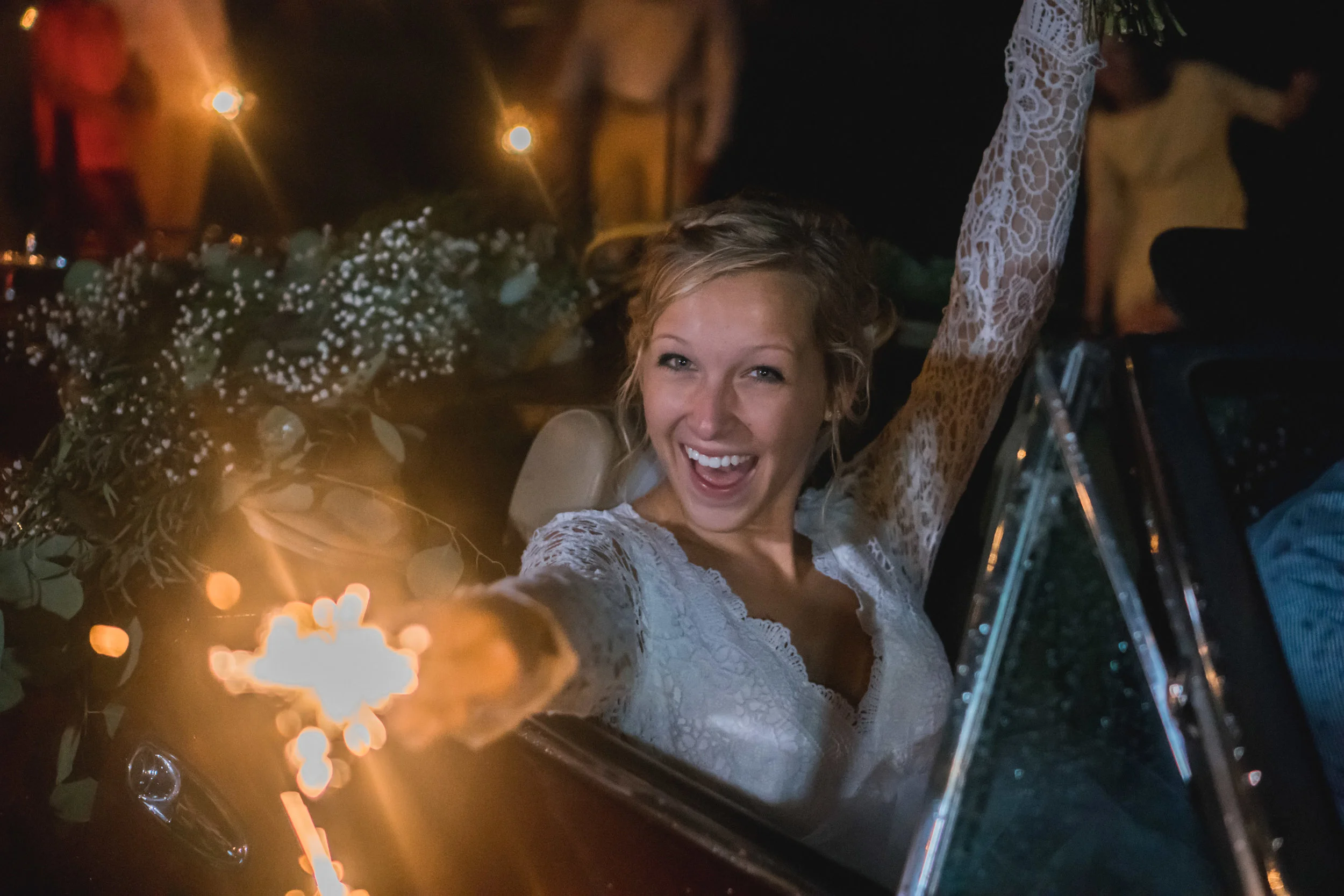 After the ceremony, we all stepped outside to find that, while it was still sunny, it was also pouring down rain! The reception was across the street in an open field, so all of us grabbed some umbrellas and headed over. But even though we were all dripping wet, there was no dampening the celebration. We are in love with these rainy photos of Duncan & Ben- the interaction between them in the middle of a rain storm echoed their entrenched love and solid foundation. Eventually, the rain passed and we got to enjoy a a beautiful sunset and rainbow.