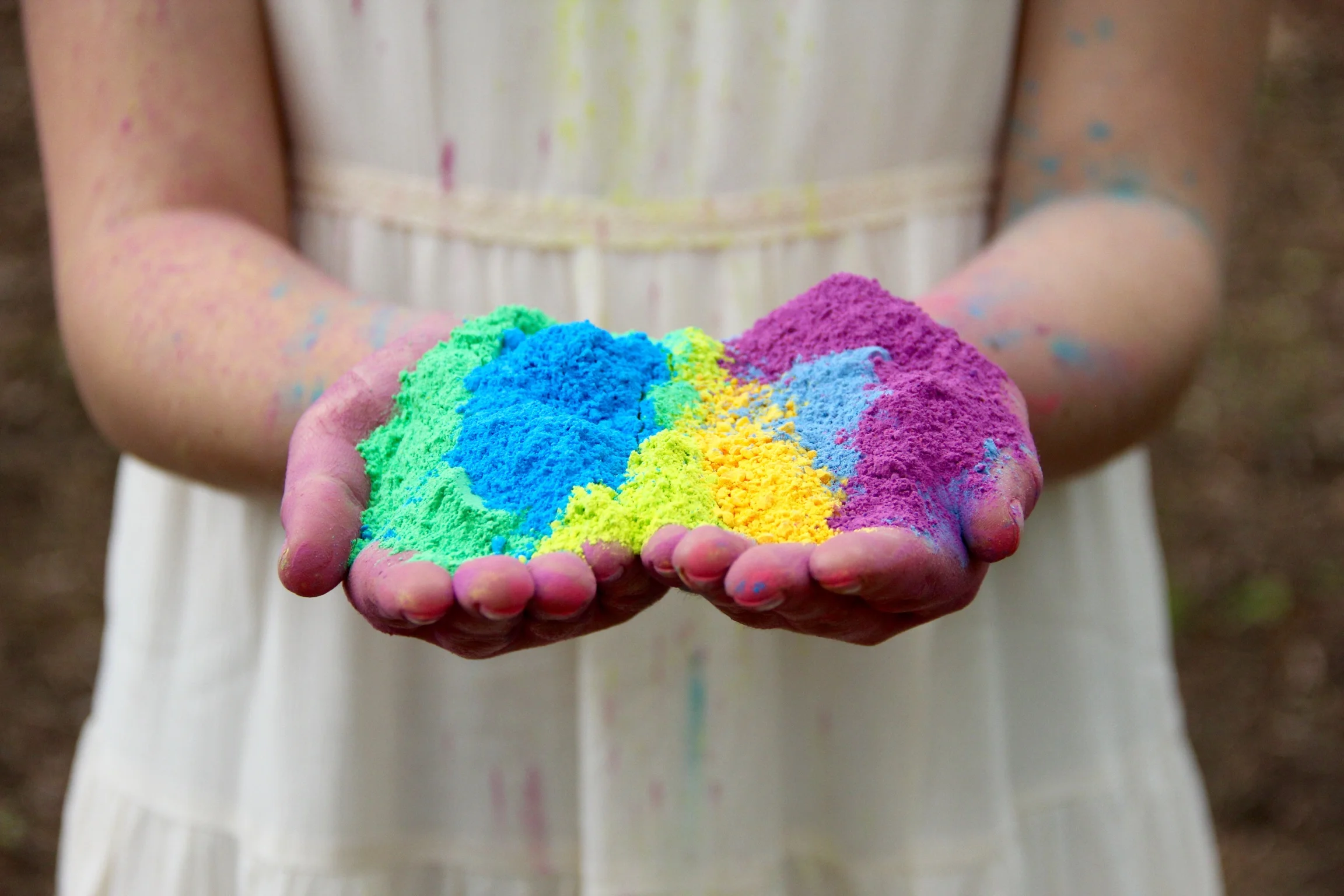 In terms of messiness, the powder gets everywhere - but we found that it washes out easily. We made the powder out of corn starch, water, and food coloring.